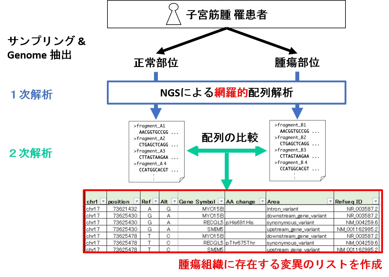 正常とターゲットを比較することで、ターゲットに特異的な変異をリストアップしています。さらに、各人の特異的な変異を除くため、17人の患者で同様にリストアップを行い、17のリストから共通した変異を探しています。