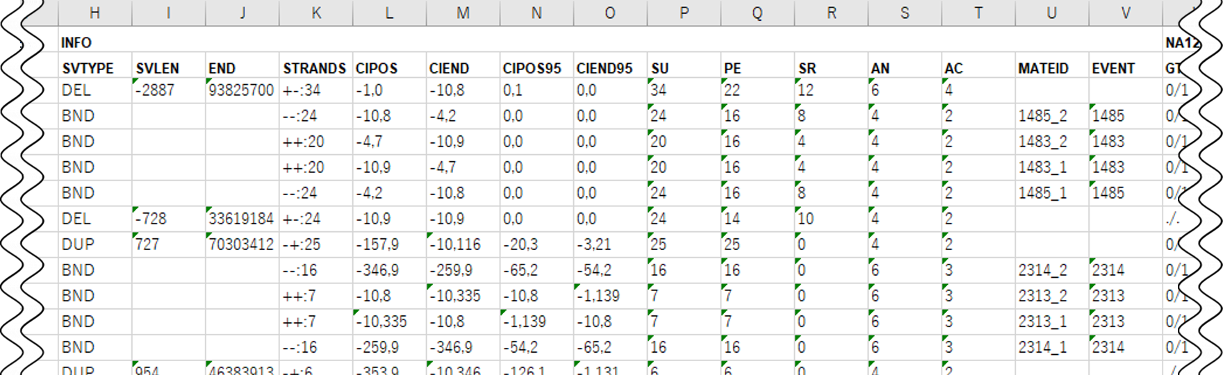 output.xlsx は以下のように表形式で変異情報を見ることができます。